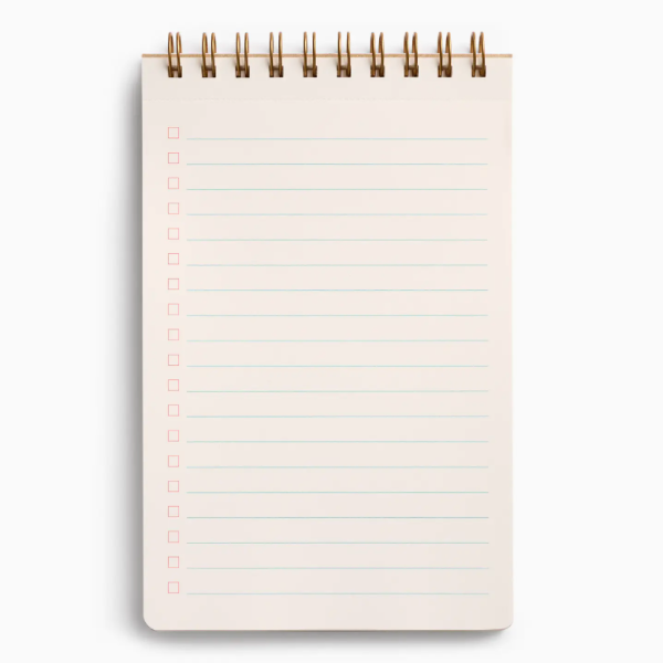 The Task Pad by Shorthand Press, the essential list notepad. With a letterpressed cover and beautiful interior pages, this lined rule notebook has checkboxes on each line allowing you to keep your lists all together.