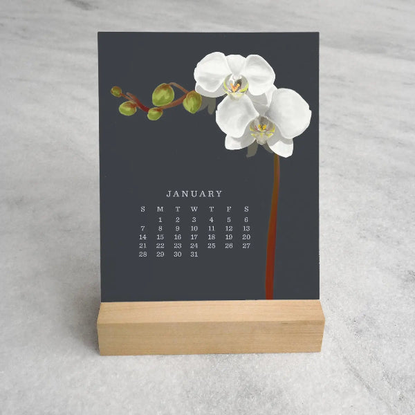 This 12-month desk calendar features original illustrations of strikingly bold orchids.