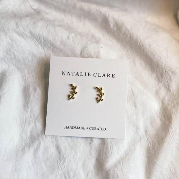 These golden plated stainless steel studs feature a delicate, leafy branch design, perfect for adding a subtle hint of nature to any look. With a subtle yet eye-catching design, these studs are great for adding a tasteful twist to any outfit.