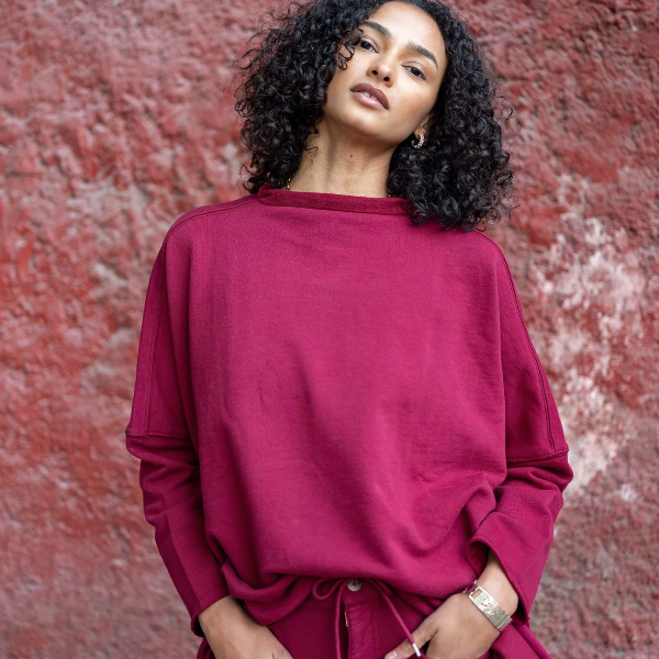 The Frenchie Mockneck Sweatshirt combines comfort and style with its luxuriously soft French terry fabric. Designed to be lightweight and flexible, it features a chic mock neckline that enhances your look while maintaining an effortlessly flattering fit. Pair with the matching wide leg pant for the ultimate travel set. One size.
