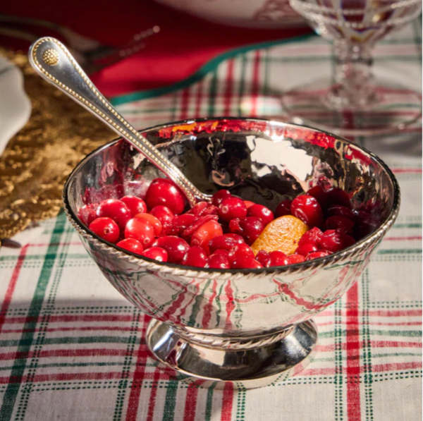 Handcrafted of hammered stainless steel, trimmed with our signature thread motif, and polished to brilliance, this gorgeous and gleaming bowl instantly elevates your cocktail hour game. Gift boxed.