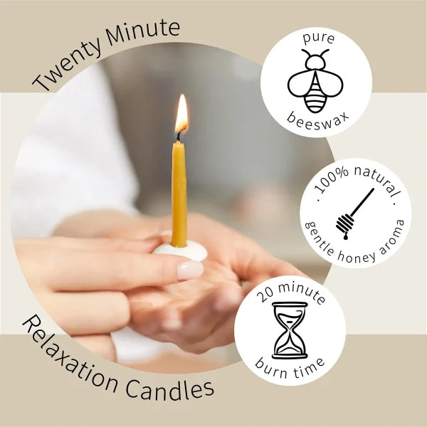 There are so many beautiful reasons to be happy. Joy and contentment can be found in the smallest things... 12 x Twenty Minute Candles with a ceramic holder for relaxation, meditation, mindfulness and well-being.