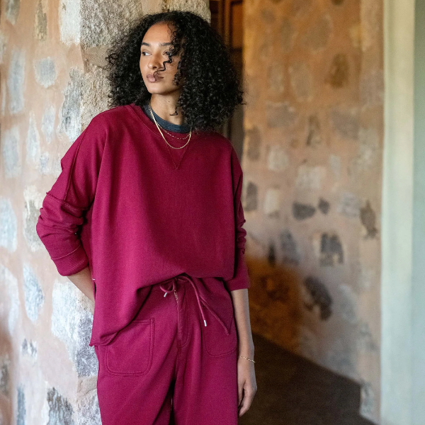 We call it the Frenchie for good reason—it’s made with French terry material that’s super-soft and lightweight. The drop shoulder shape and split sides you’ve come to love from our sweaters ring true in this piece—a sign that this is one of our go-to’s. The nature of this material is stretchy while still maintaining its flattering cut.