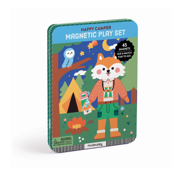 Mudpuppy’s Happy Camper Magnetic Play Set includes 2 colorful scenes and 3 sheets of mix and match magnets for dressing up the colorful wildlife campers. The sturdy tin package offers hours of imaginative play with easy cleanup and storage. Mudpuppy's Magnetic Tins are the perfect children's travel toy and quiet time activity.