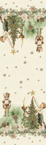 Noel Vintage Dore Table Linens are woven from a refined cotton-linen blend, offering a graceful drape that improves with every use. Designed by our team of French artisans, this printed holiday design features a charming linear border of vintage-style Christmas trees, reindeer, and nutcrackers on a crisp white background. Timeless and festive, it brings warmth and elegance to seasonal gatherings.